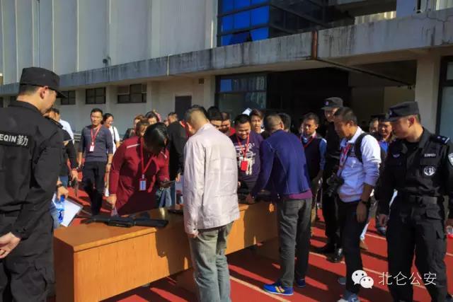 下午1点半左右,活动大巴停在了北仑体育训练基地二期。远远的,就看见一群身穿制服的警务人员排成方阵站立在操场中央。走近一看,跑道上摆放有两张桌子,桌上摆放着长短不一的各式枪械。