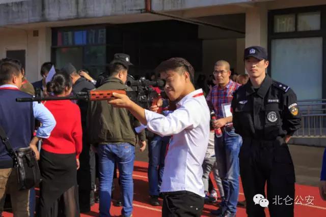 在巡特警的指导下,大家不仅了解了枪支的构造,学习枪支的装卸;还有模有样地端起狙击枪等,过一把“狙击手”的瘾。